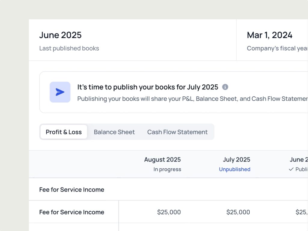 Book Publishing. Auto-populate P&L, Balance Sheet, and Cash Flow directly from your accounting system – with the ability to customize what you share and when.