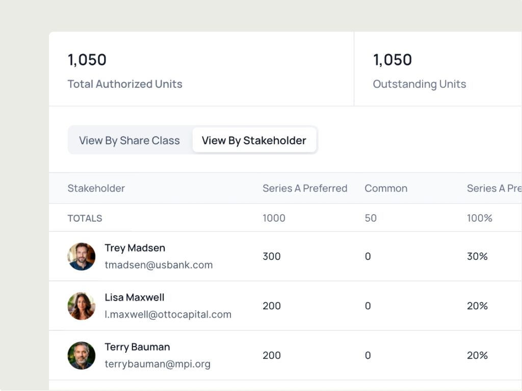 Cap Table Tracking. Keep ownership and voting power accurate and accessible.